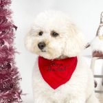 Bandana de polar disponible en color verde o rojo atada con cinta de bies navideño (dibujos varian según disponibilidad), por lo tanto es regulable a varias tallas.