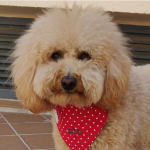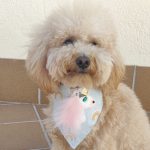 Bandana atada con velcro con estampado de estrellas blancas sobre fondo azul baby.