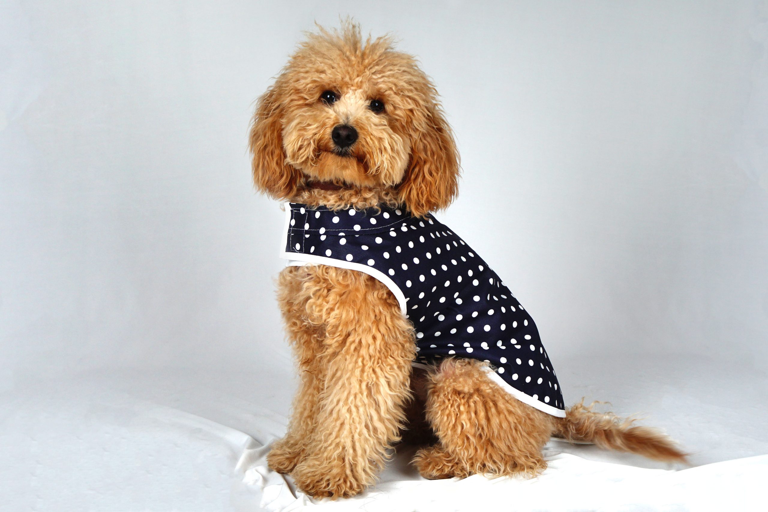Impermeable con tejido testado de algodón en color azul marino con puntos blancos.