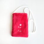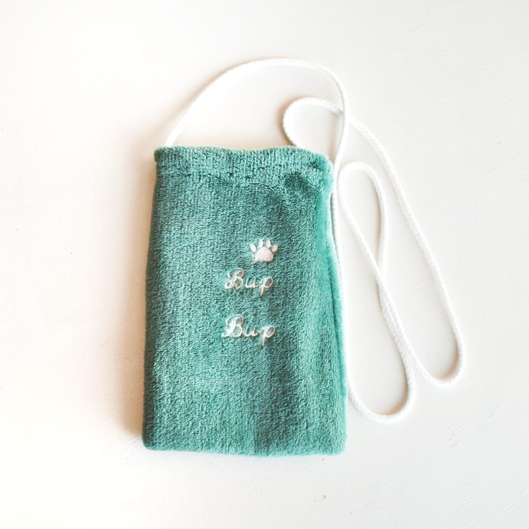 Mini bag de polar en color verde con asa larga de cordón para colgar.
